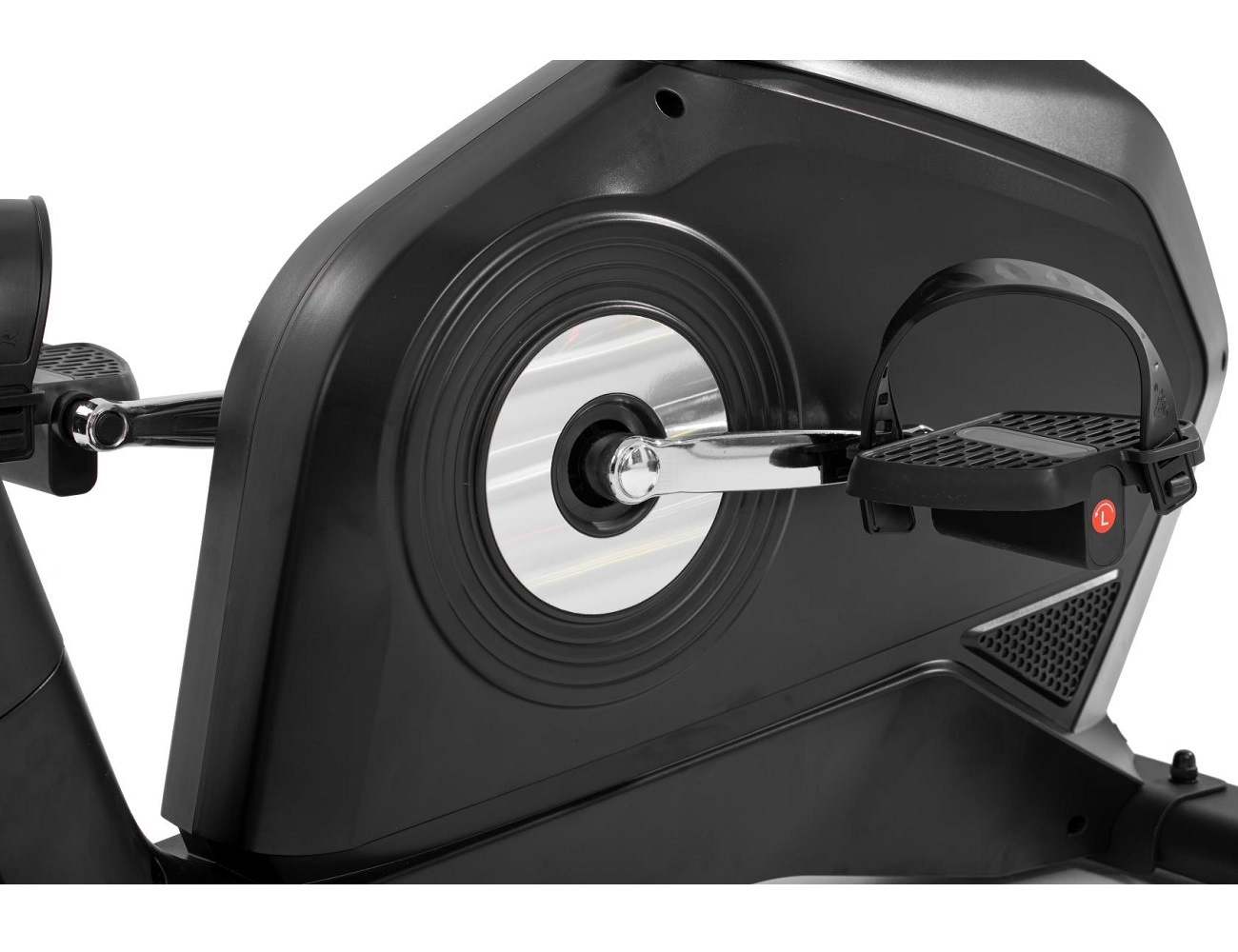 Сиденье регулируется по вертикали (9 уровней) и горизонтали (5 бесступенчатых положений). Руль также имеет регулировку. Гелевое сиденье обеспечивает комфорт даже при длительных тренировках.